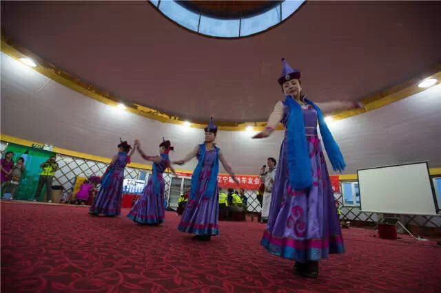 月色撩人,璀璨如耀眼的星星。蒙古包下,一位蒙古族小伙子开始献唱,悠扬辽阔的嗓音在蒙古包内回荡。蒙古族的姑娘们随着音乐翩翩起舞,舞姿闲婉柔靡,轻盈回旋,恰若一曲长相思,舞尽人间芳华。情浓之处,车队里的美女车友也随着音乐舞动起来。 在内蒙,马头琴节目必不可少。蒙古族小伙子的一曲《万马奔腾》将晚宴气氛调动开来,琴声浩瀚深邃、气势磅礴,闭目凝思,仿若骊驰车队就如同这千军万马,浩浩荡荡奔腾而来,将会踏遍天下!
